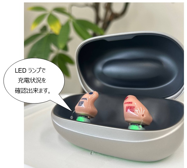 また補聴器を充電器に入れるだけで、磁石でカチッと固定され簡単に充電できます。